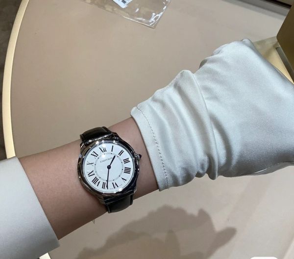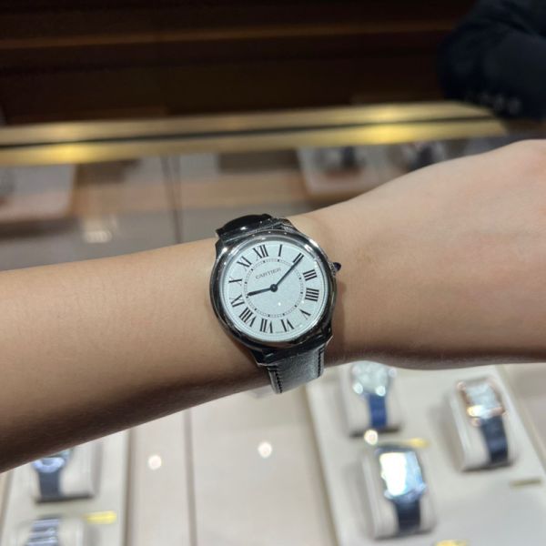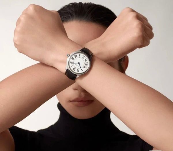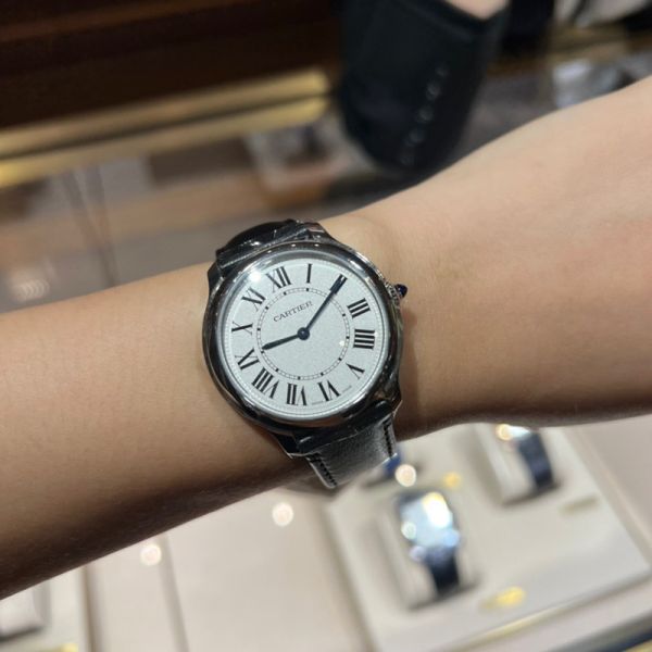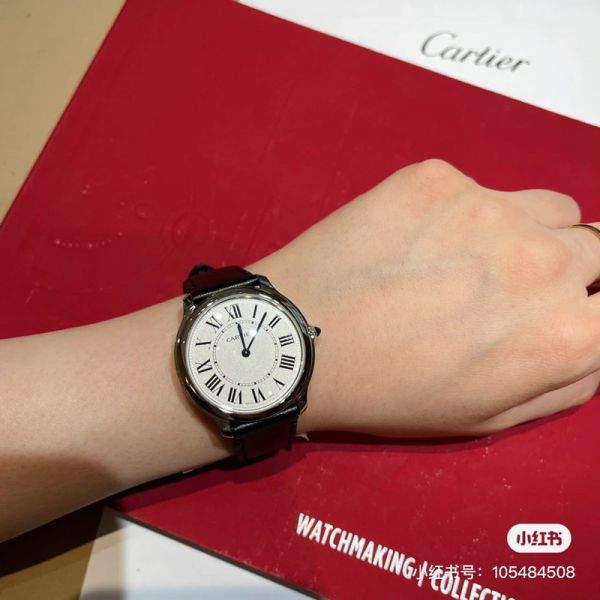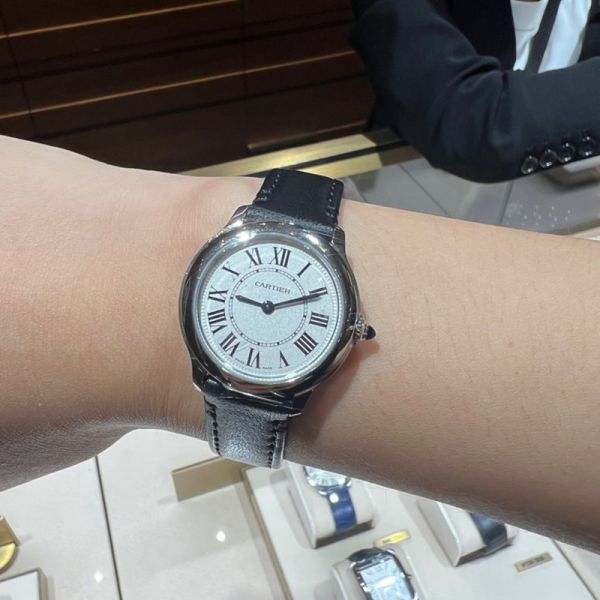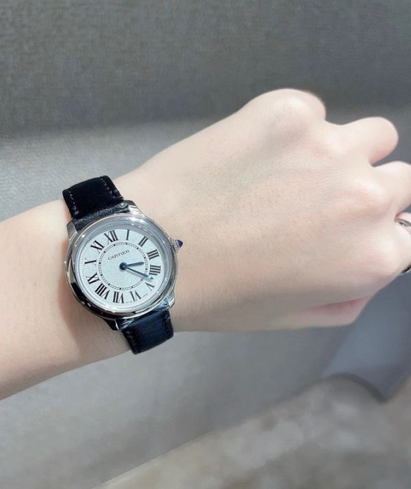 Best Edition With Automatic Movement Cartier Ronde De Black Leather Strap Women Watch