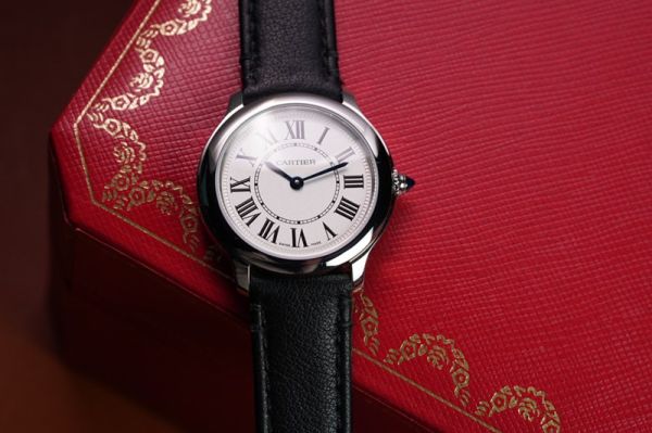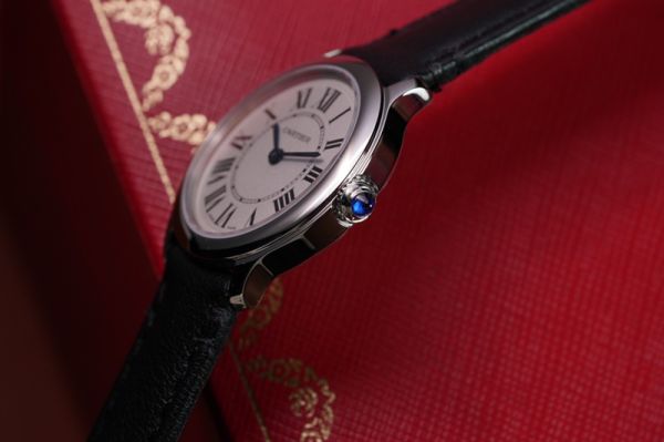 Best Edition With 157 Automatic Movement Cartier Ronde De Black Calfskin Leather Strap Women Watch