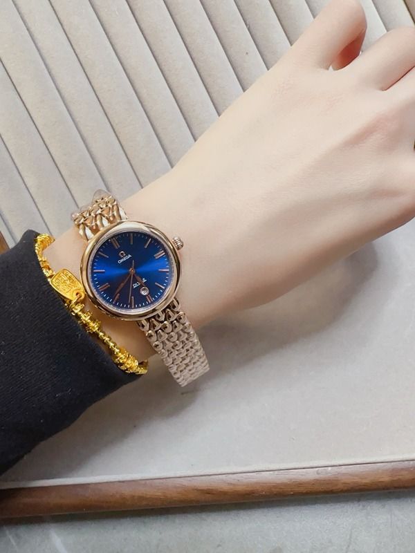 Omega Imported Quartz Movement 28MM Stainless Steel Lady Mineral Glass Watch