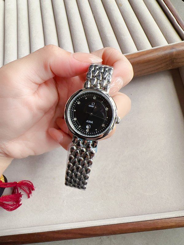 Omega Imported Movement 27MM Smooth Bezel Black/White Face Lady Watch
