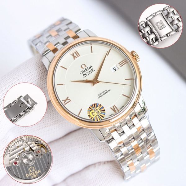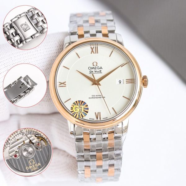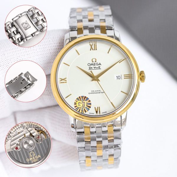 GT Factory Omega De Ville Co-Axial Chronometer 39.5MM Inhouse 2500 Movement White Face Wrist Watch
