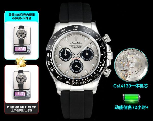 N+ Factory Rolex Daytona Replica with Rubber Strap 155g 40mm*12.2mm 7750/4310/4131 Movement Watch