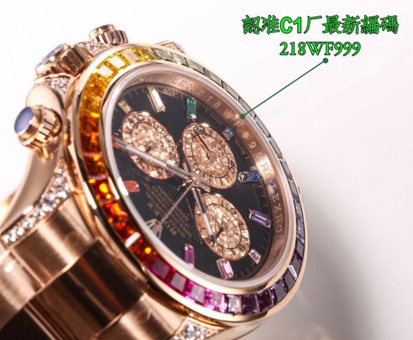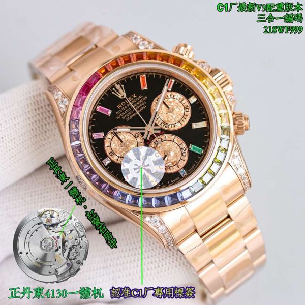 Best Edition With Swiss 4130 Automatic Movement Rolex Daytona Replica with Rainbow Diamond Bezel Watch