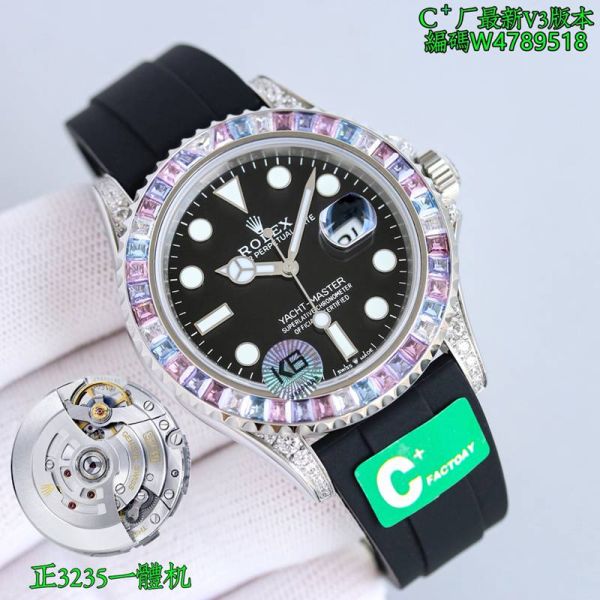 Best Edition With Swiss 3235 Automatic Movement Rolex Yacht Master Black Dial Replica with Diamond Bezel Watch