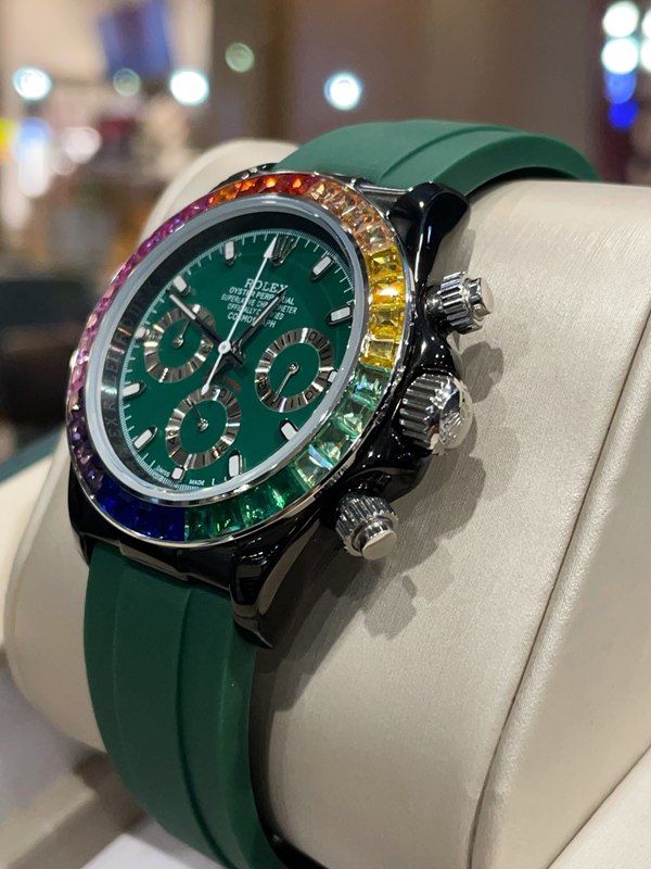 Best Edition With Japan Quartz Movement Rolex Rainbow Daytona Replica with Rainbow Diamond Bezel Watch