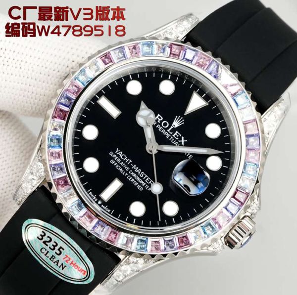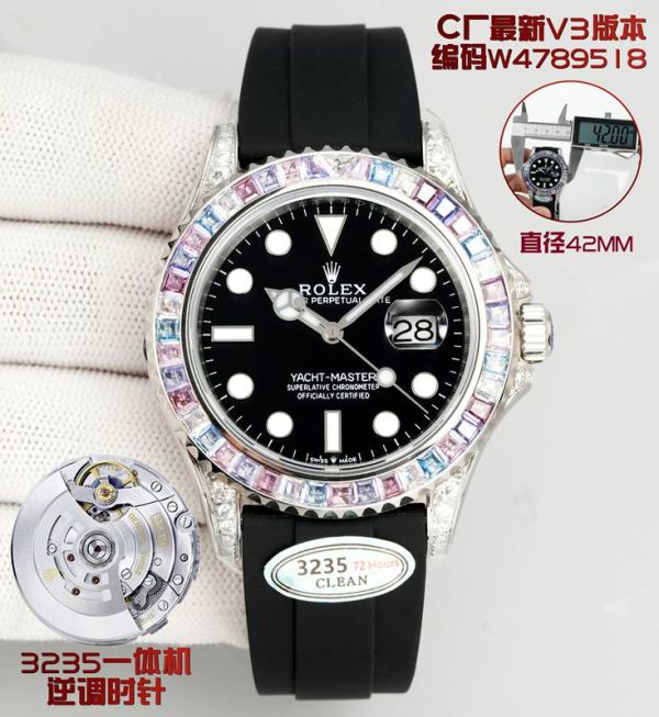Rolex Yacht Master Black Face 42mm 3235 Movement 72H W4789518 Rubber Strap Diamond Bezel Watch realistic Rolex replicas USA