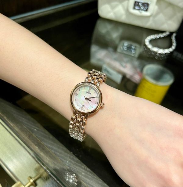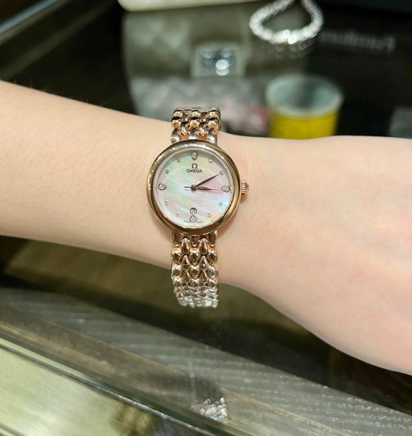 Best Edition With Swiss Automatic Movement Omega De Ville Rose Gold Bracelet Mother of Pearl Dial Watch