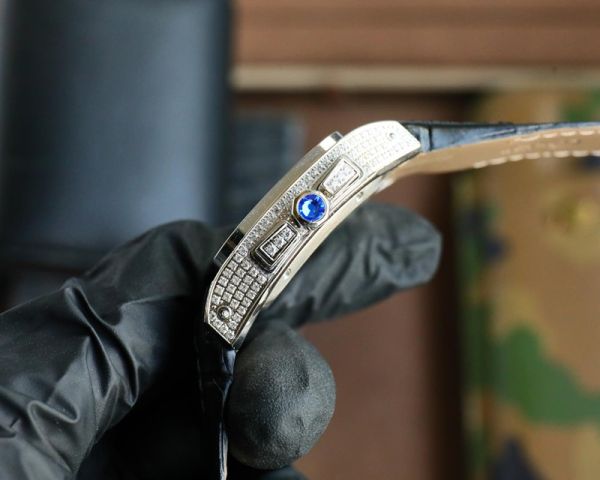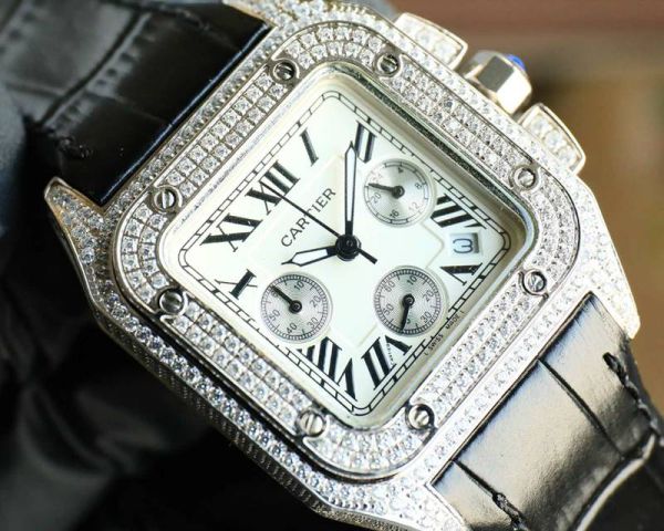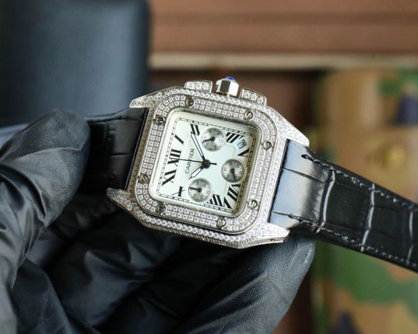 Best Edition With Swiss Quartz Movement Cartier Santos Diamond Bezel Cowhide Leather Strap Watch