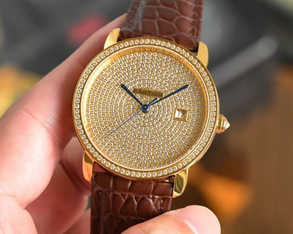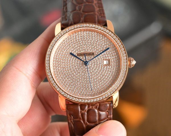 Best Edition With Swiss 8215 Automatic Movement Cartier London Diamond Dial Calfskin Leather Strap Watch