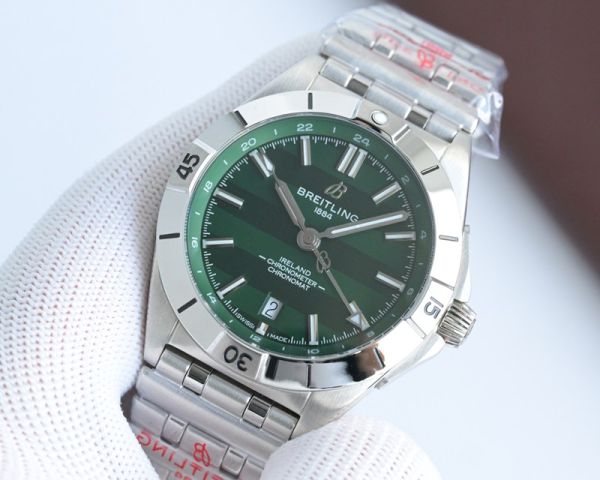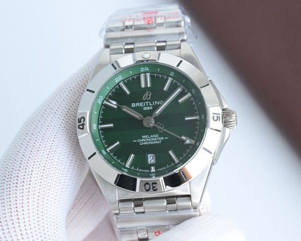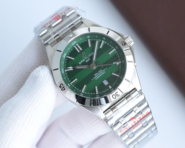 Best Edition With Swiss 2836 Automatic Movement Breitling Chronomat Blue/Green Dial Stainless Steel Strap Watch