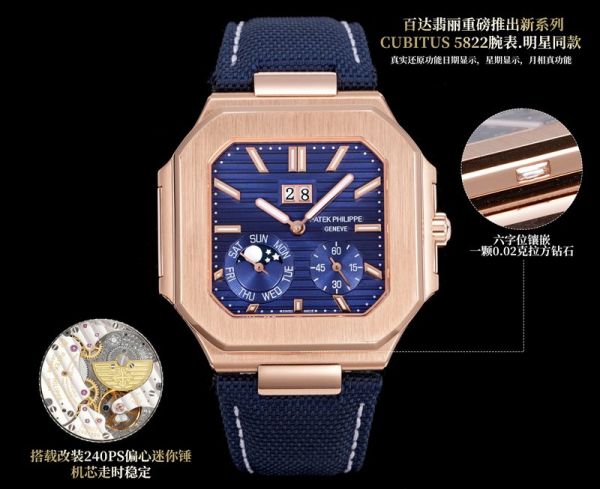 Best Edition With Swiss 240 Automatic Movement Patek Philippe Cubitus Sapphire Glass Watch