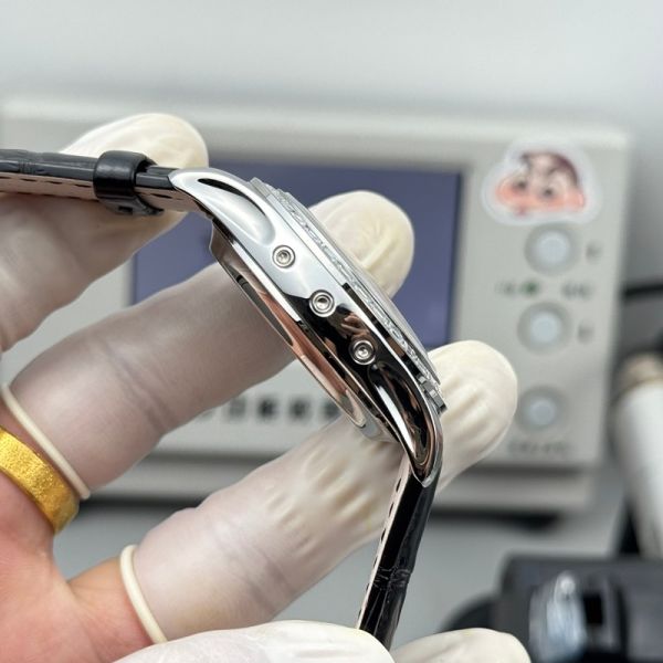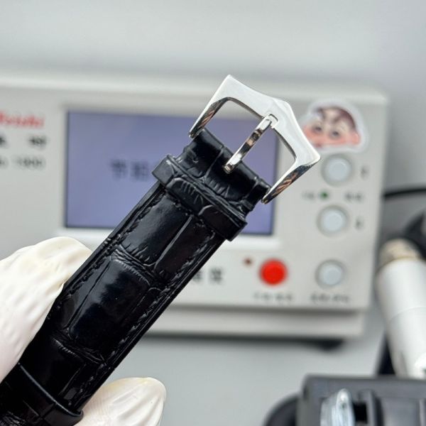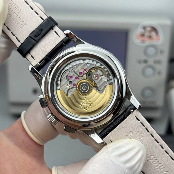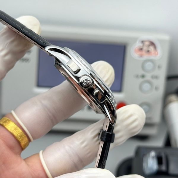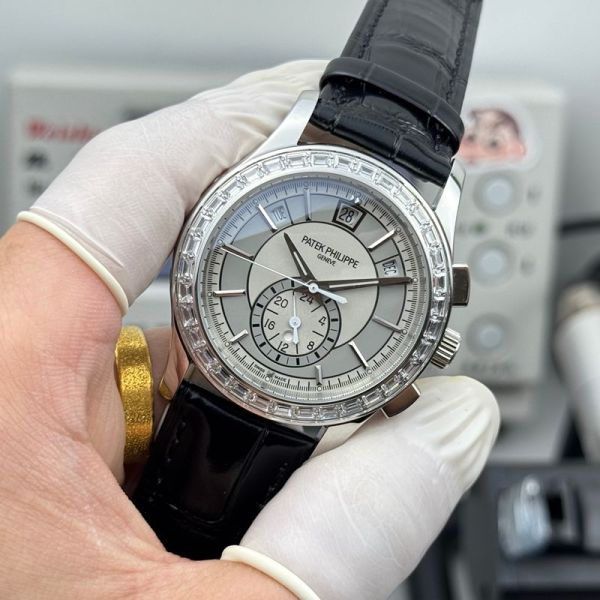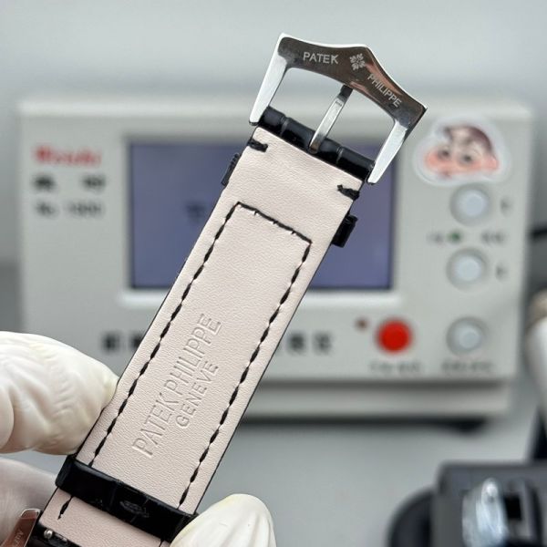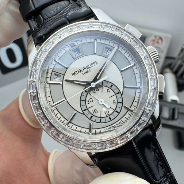 Best Edition With Swiss Automatic Movement Patek Philippe Complications Grey Dial Black Leather Strap Watch
