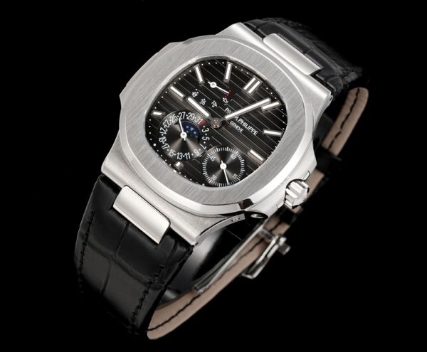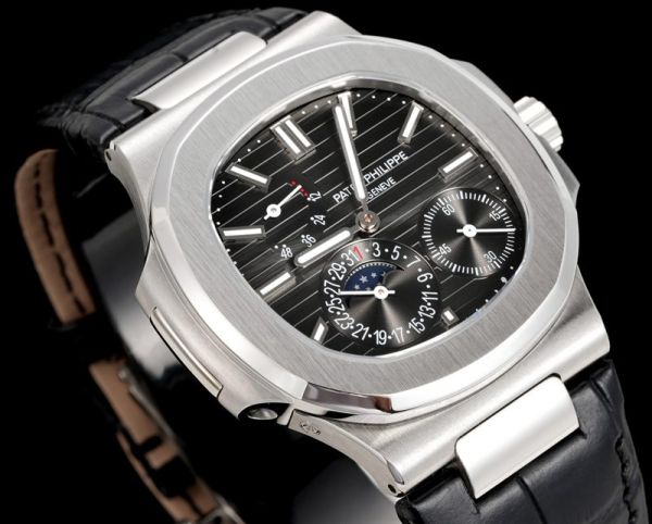 Patek Philippe Nautilus ladies Cal.240PS 40mm Black Leather Strap Black Dial Watch