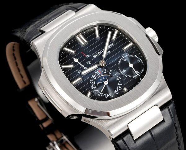Patek Philippe Nautilus ladies Cal.240PS 40mm Black Leather Strap Blue Dial Watch