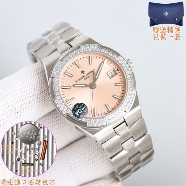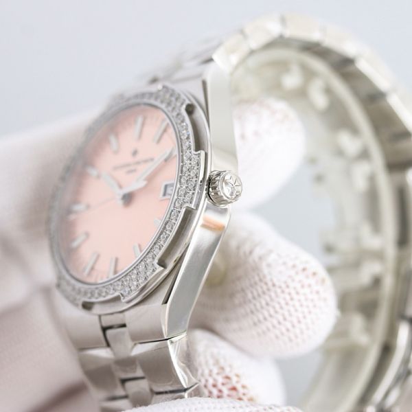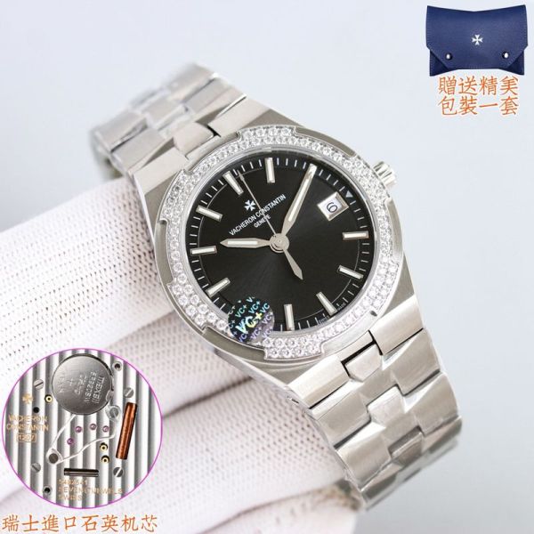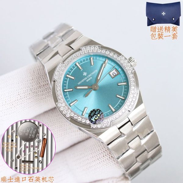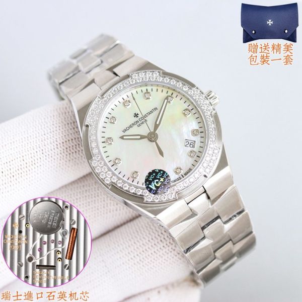 Vacheron Constantin Overseas 33*9mm 316L Steel Diamond Bezel Quartz Movement Silver Strap Watch