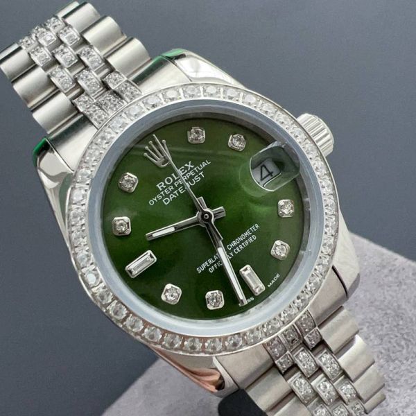 The green dial shows great depth under different lighting conditions, while the diamond-set bezel and hour markers sparkle brilliantly in the sun—its high distinctiveness makes it a popular Rolex model.