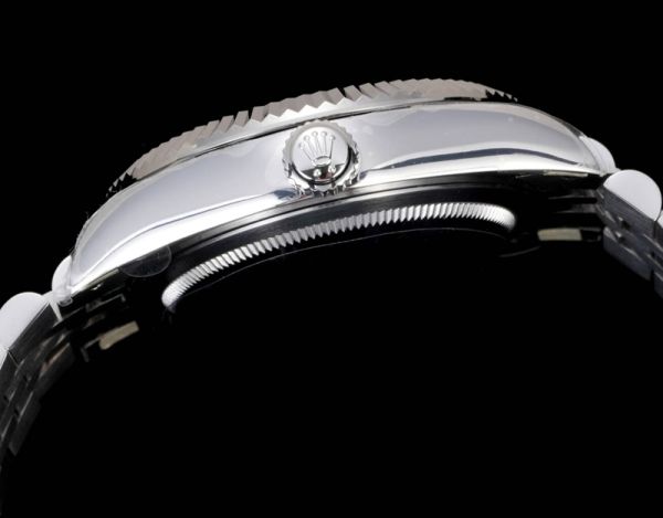 BEZEL: Silver Rind Command Fluted Rotating Bezel with adjustment of the month function.