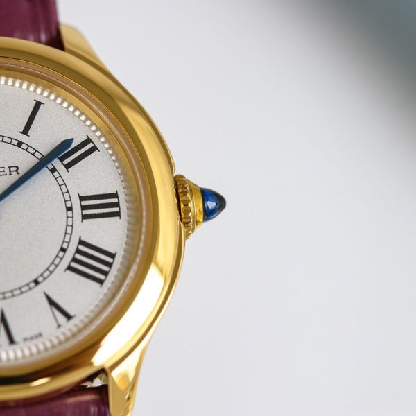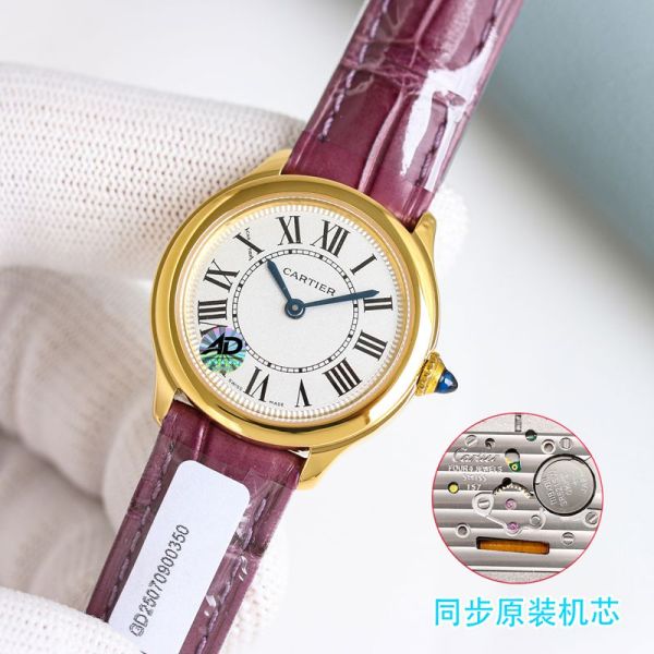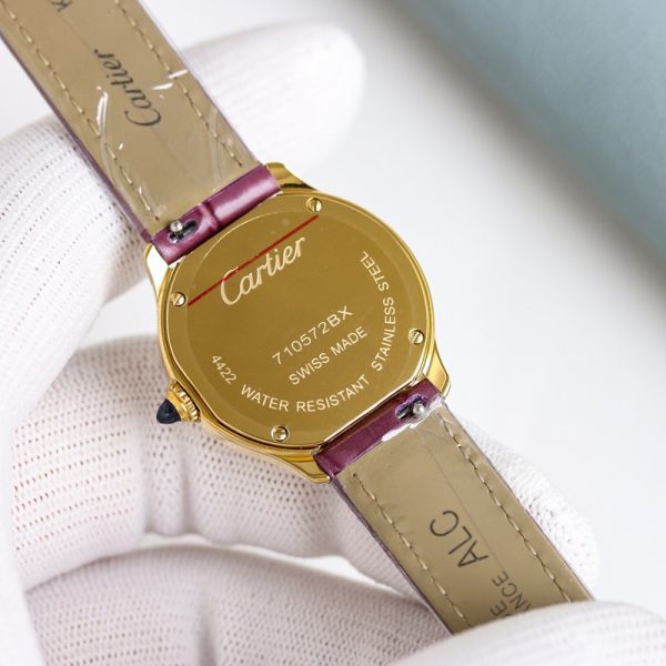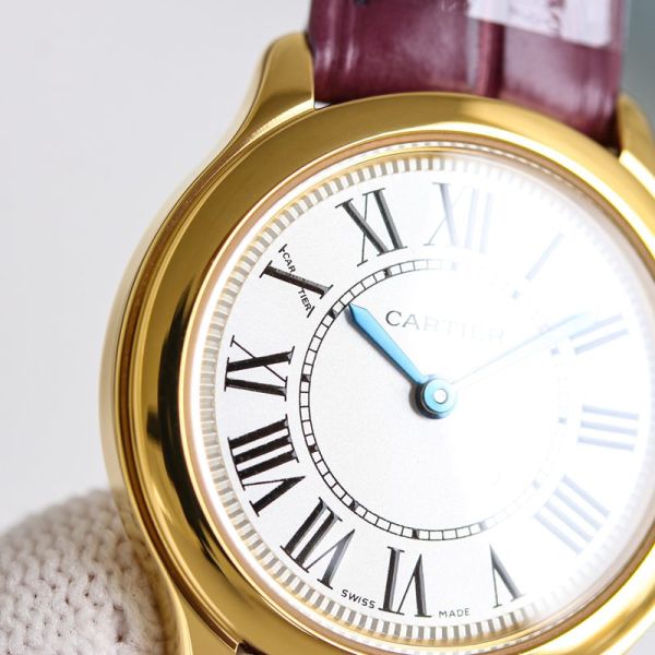 Cartier Ronde de Cartier Yellow Gold Watch, with a 29 mm case diameter, an 18K gold case and a purple alligator leather strap, is elegant and exquisite.