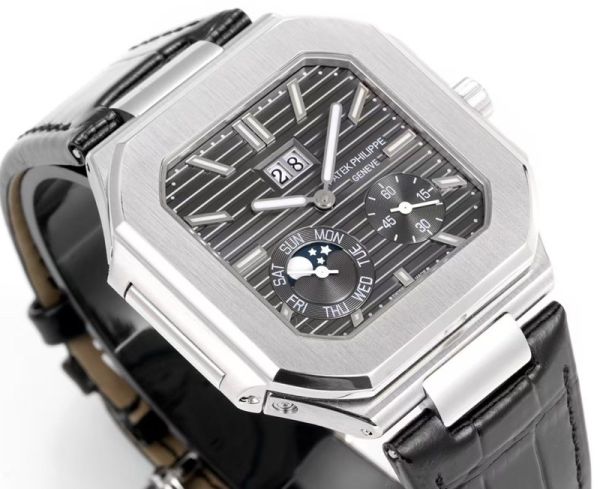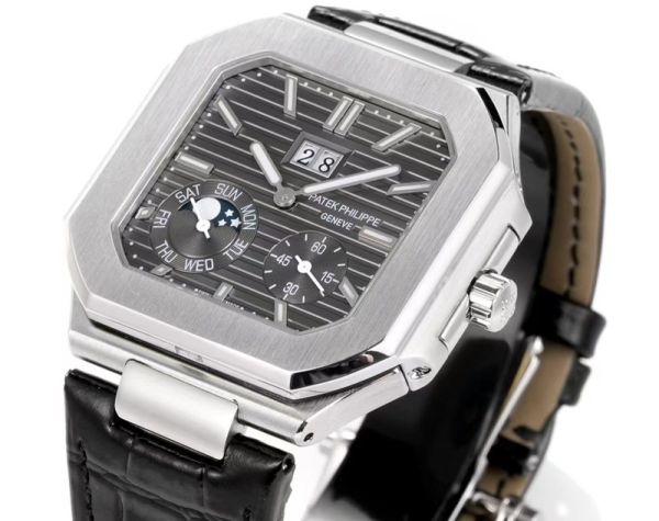 Best Edition With Swiss 240ps Automatic Movement Patek Philippe Cubitus Dark Grey Dial Calfskin Leather Strap Watch