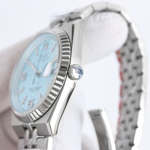 Best Edition With 9015 Movement Replica Rolex Land-dweller White Gold with White/Ice Blue Dial White Gold/Rose Gold SS Band Watch