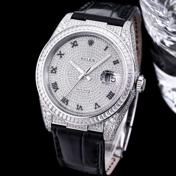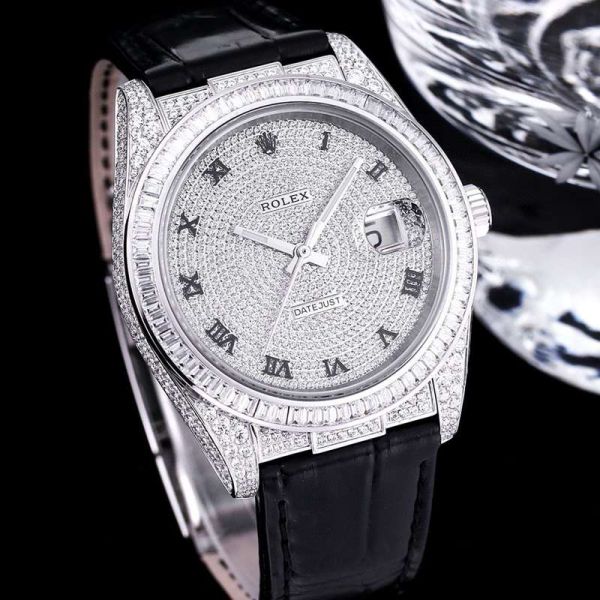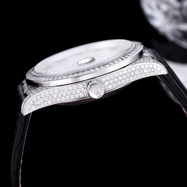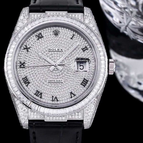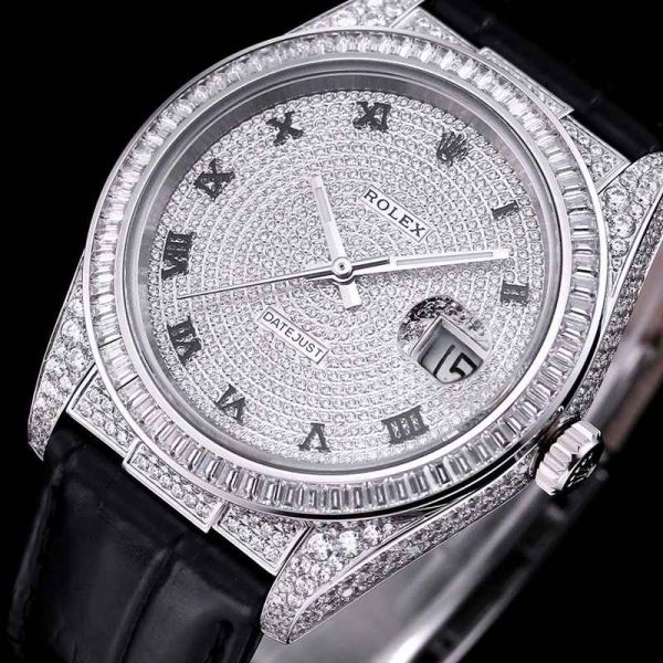 GB Factory Replica Datejust Rolex Alligator Leather Strap Silver steel case with White diamond diameter 40mm Watch