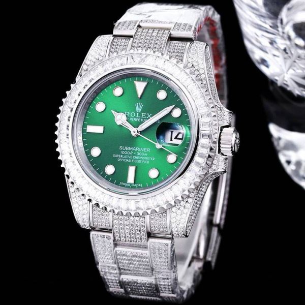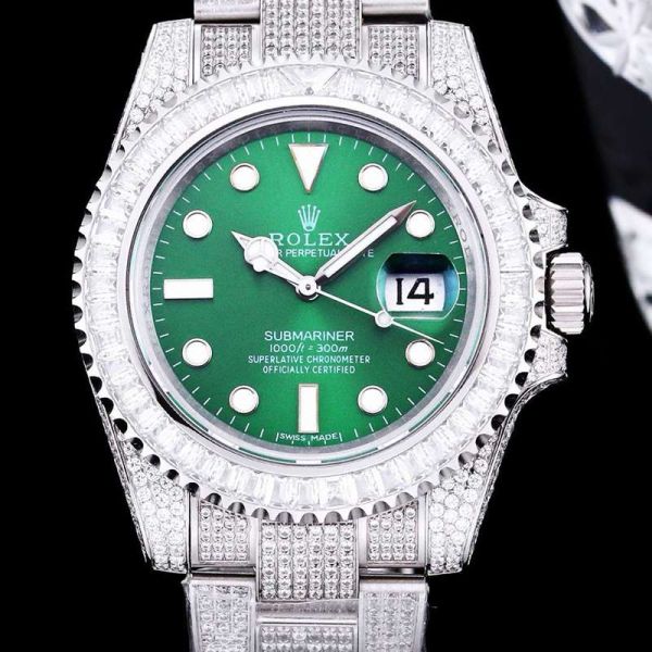 GB Factory Faux Rolex Submariner Silver steel case with White diamond diameter 40mm Watch