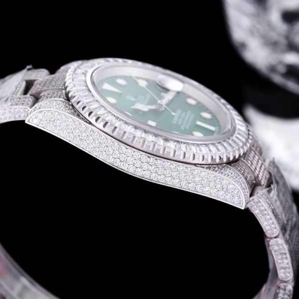 The bezel, case, and bracelet are densely inlaid with the top Swarovski diamonds