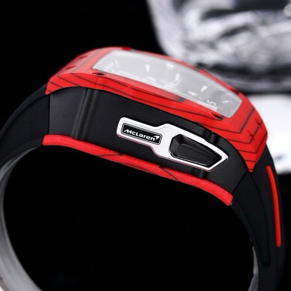 BEZEL: Red carbon fiber case Bezel with White numbers