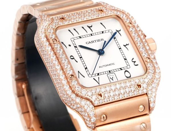 THB Factory Cartier Santos Middle East Version Tape Rose gold steel case with White diamonds diameter 39.8mm watch