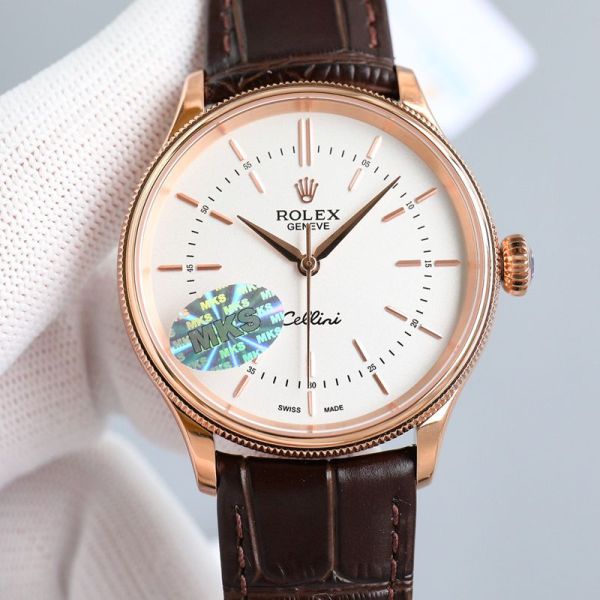 Best Edition With Automatic Movement Rolex Geneve Cellini with Leather Strap Watch