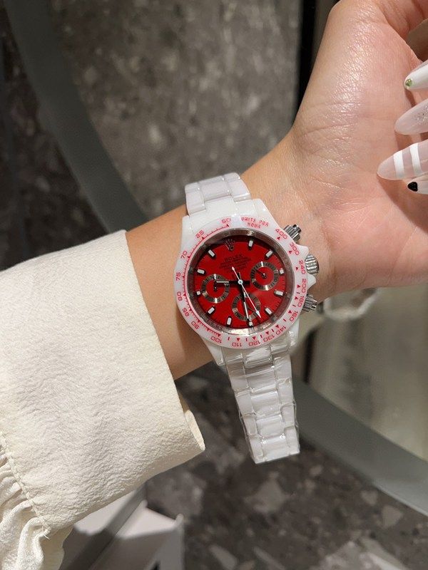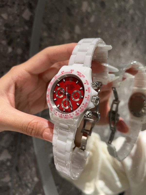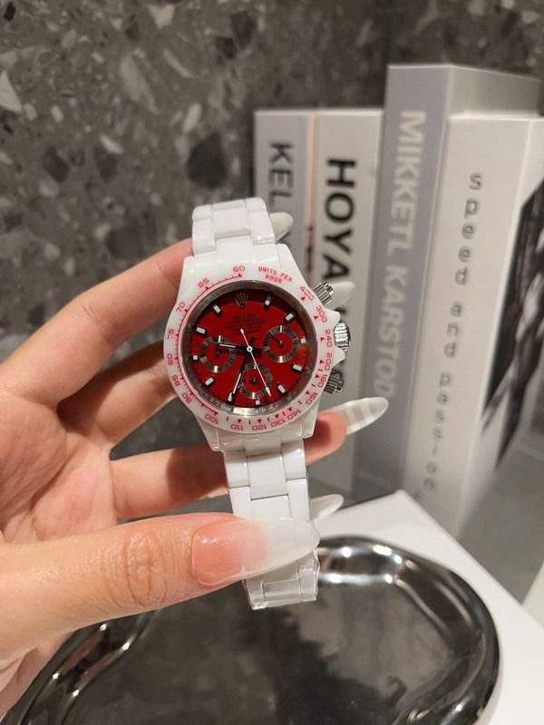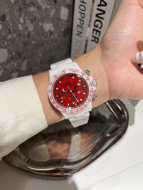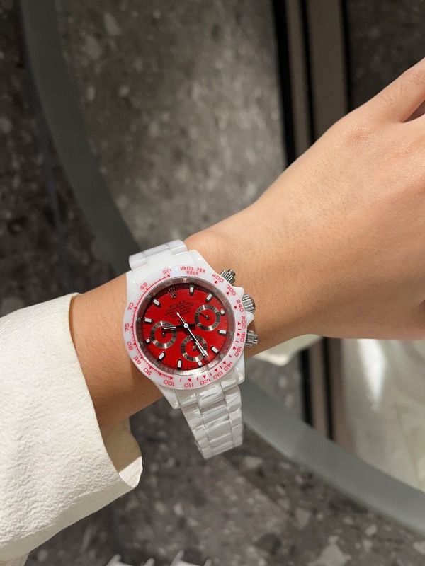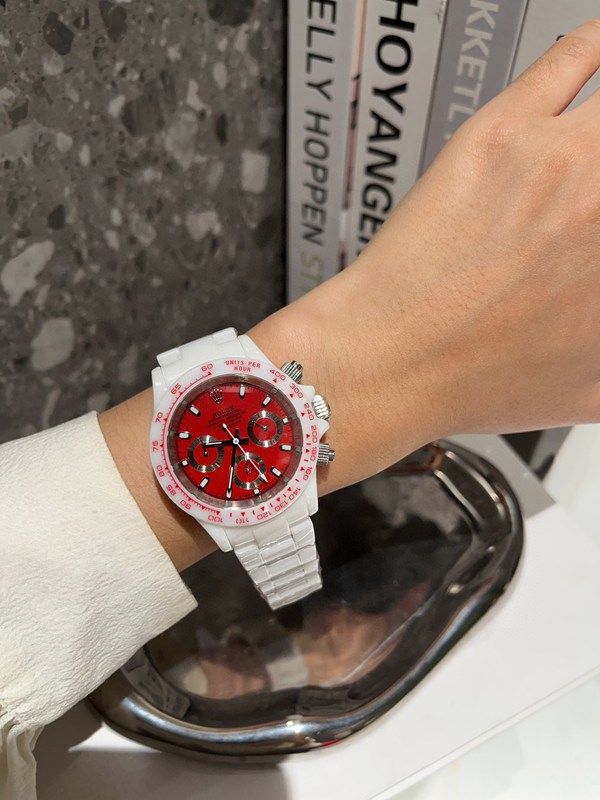 PPM Factory Rolex stainless steel band Daytona Vintage Red Diamond Bezel /Markers Silver Strap Watch |
