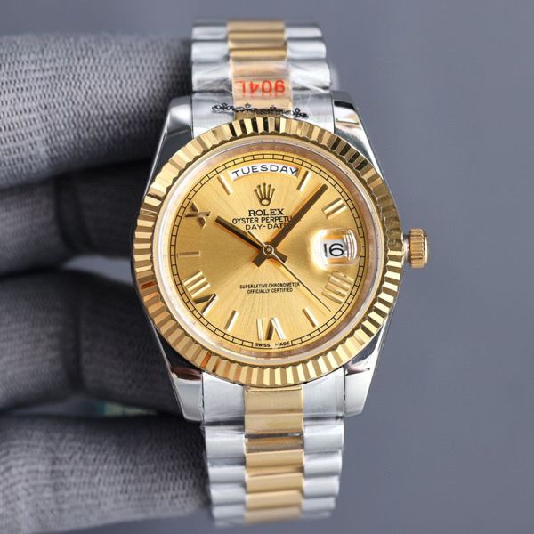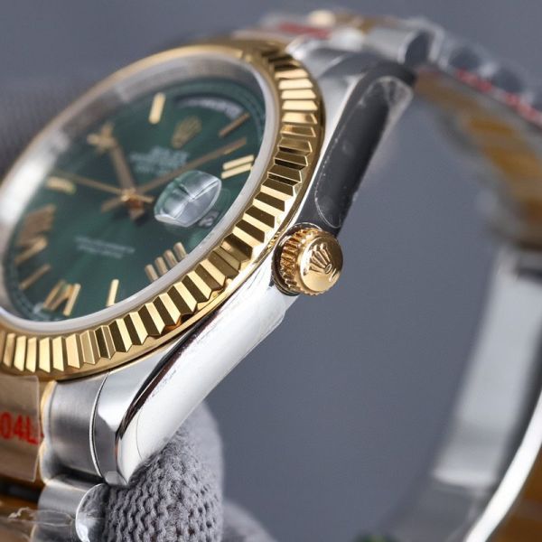 Best Edition With 8215 Automatic Movement Rolex Daydate Replica with Green Dial Gold Fluted Bezel Two-tone Gold Oyster Stainless Steel Strap Watch