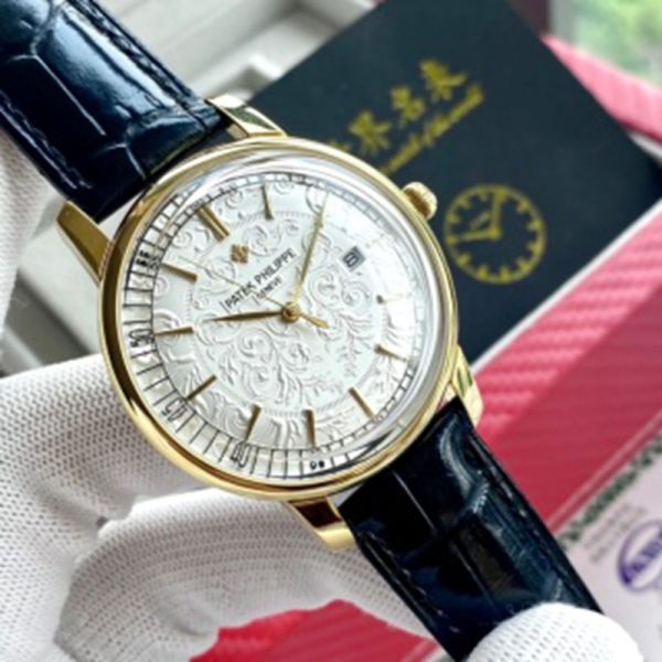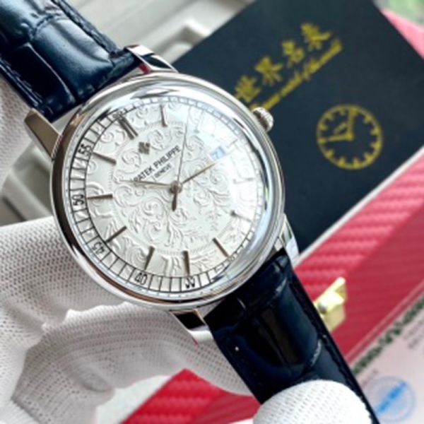 PATEK PHILIPPE 9015 Automatic Movement Italian Cowhide Style Black 42mm Watch