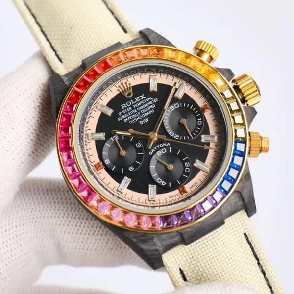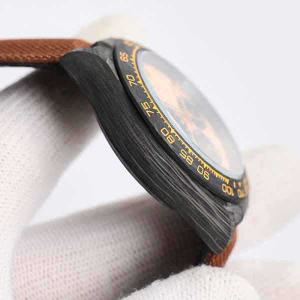 Black ROLEX Daytona Replica 40*12.4MM Carbon Fiber Case High Quality Black Dial Brown Strap Watch