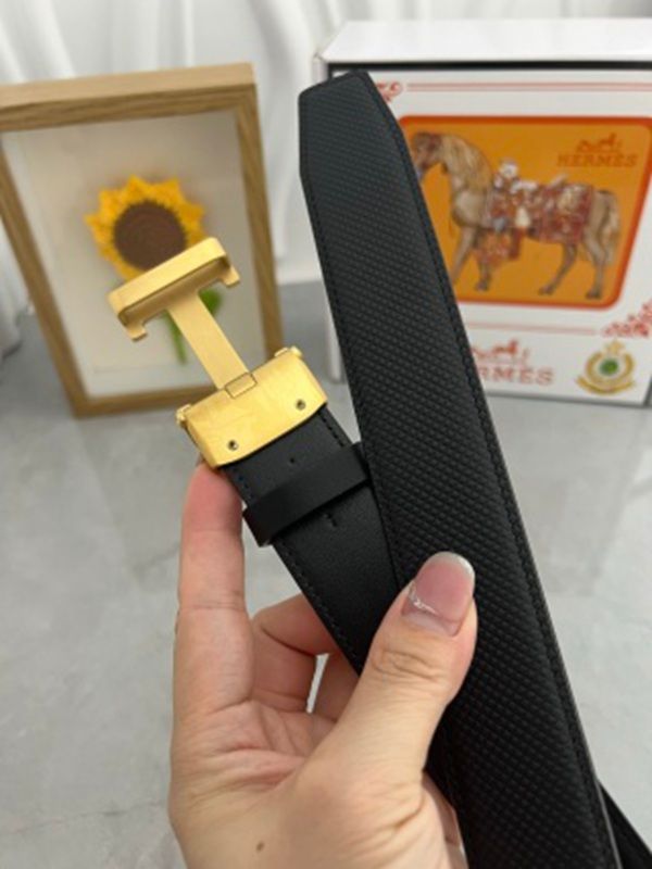 1:1 Hermes Black Leather Belt with Gold 'H' buckle Steel Buckle 3.5cm