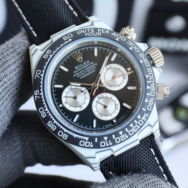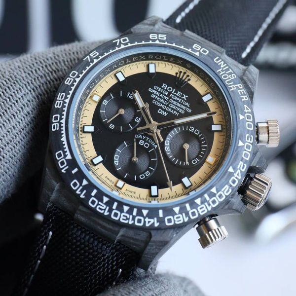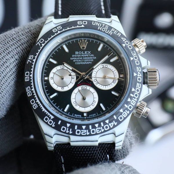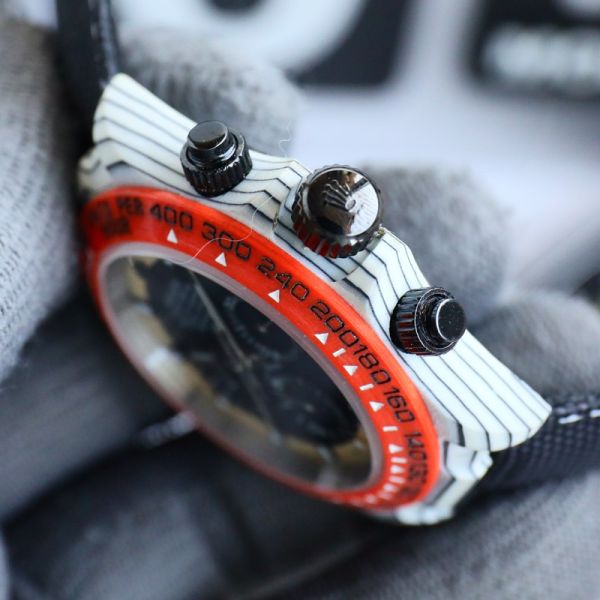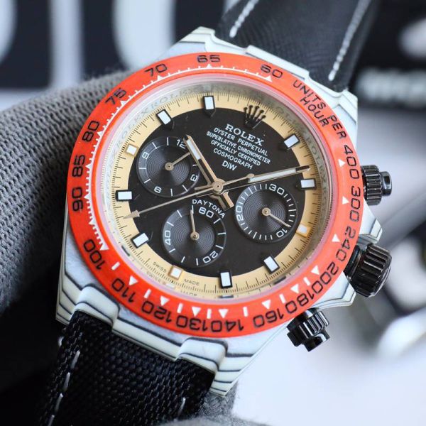 Black ROLEX Daytona Replica 40*12.4MM Carbon Fiber Case Black Dial Orange/Black Bezel Watch