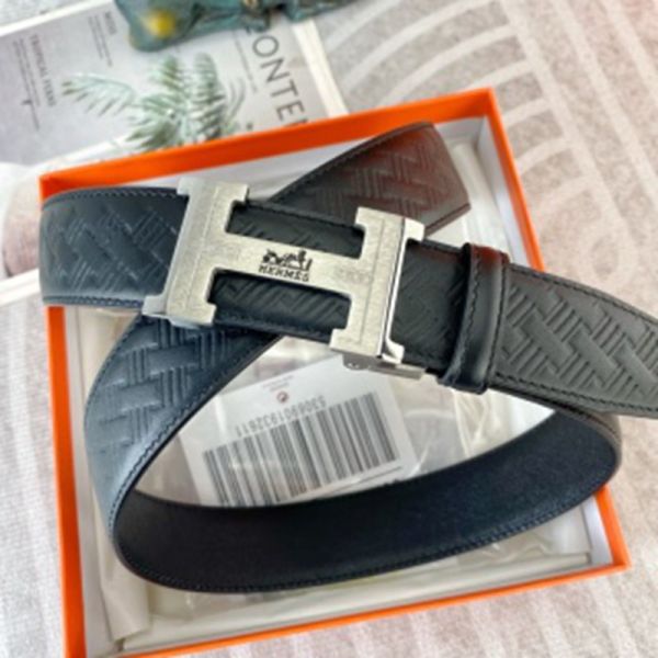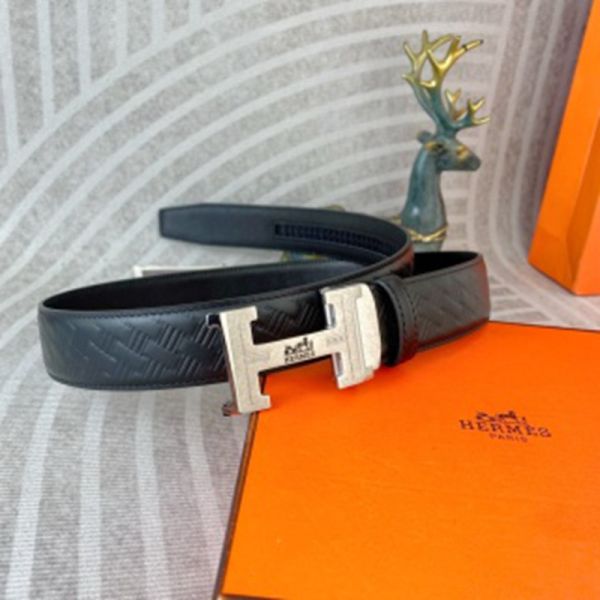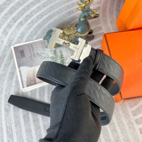 1:1  Hermes  Black Leather Belt  with Silver 'H' buckle  Buckle without Pattern 3.5cm
