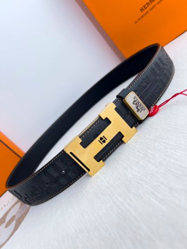 1:1 Hermes Black Leather Belt with Gold "H" buckle Steel Buckle 3.8cm