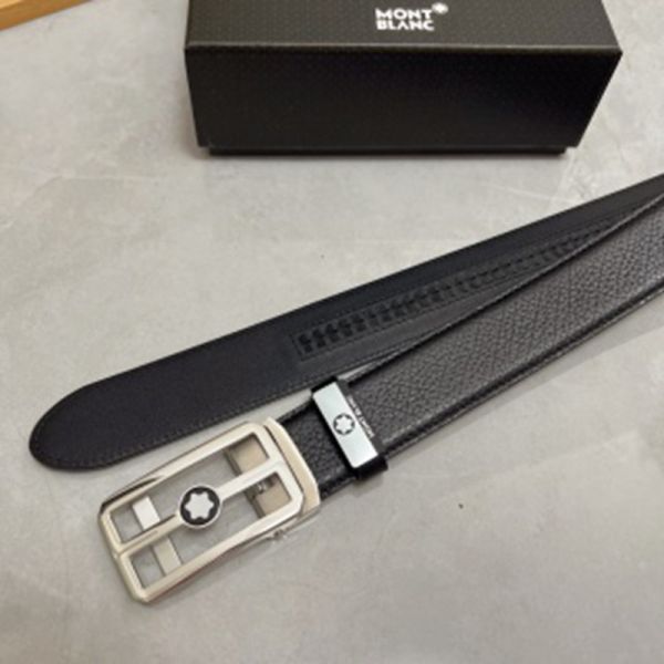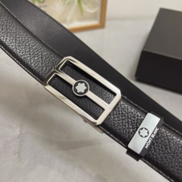 1:1  Montblanc Black Leather Belt with Silver  Logo Buckle "田“Shape Buckle 3.5cm