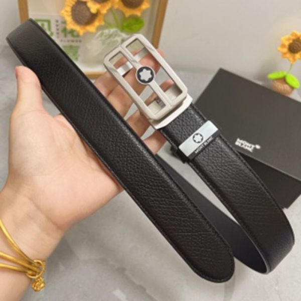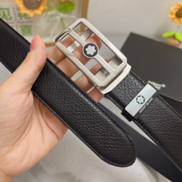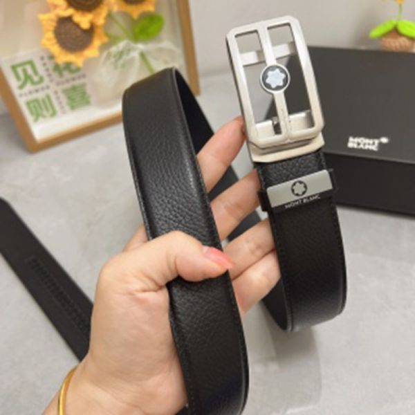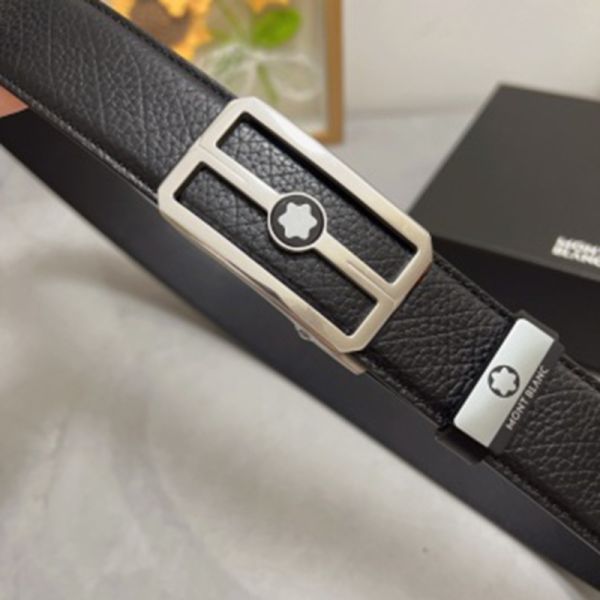 1:1 Montblanc Black Leather Belt with Silver Logo Buckle "田“Shape Buckle 3.5cm