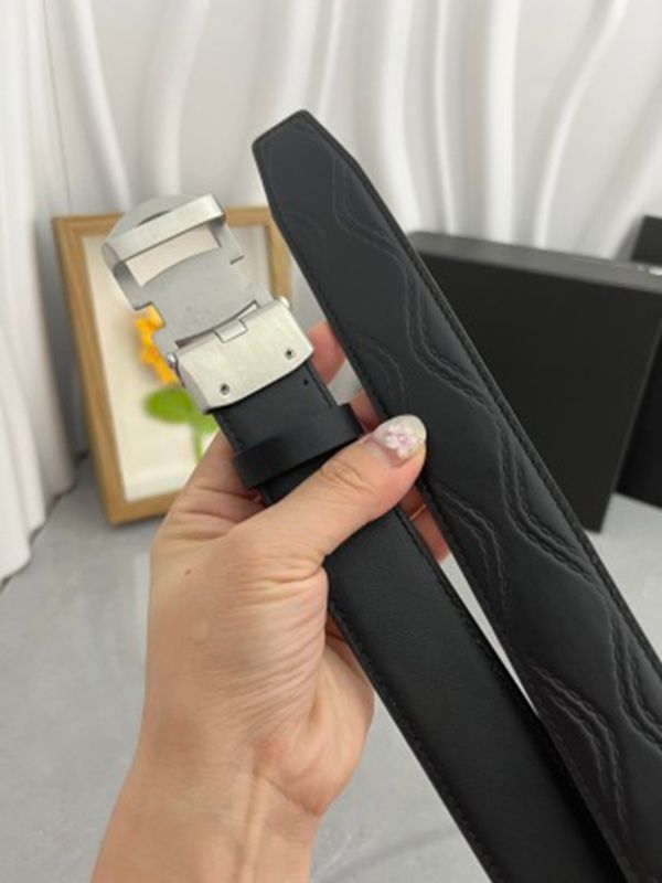 1:1  Montblanc Black Leather Belt with Silver  Logo Buckle Pull Ring Type Buckle 3.5cm