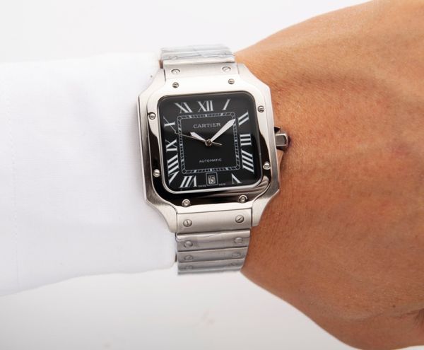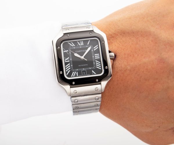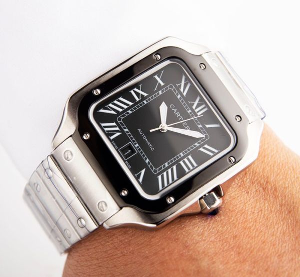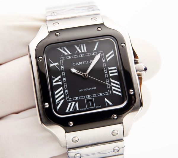 Best Edition With 8215 Automatic Movement Cartier Santos Black Dial Silver Stainless Steel Strap Men Square Watch