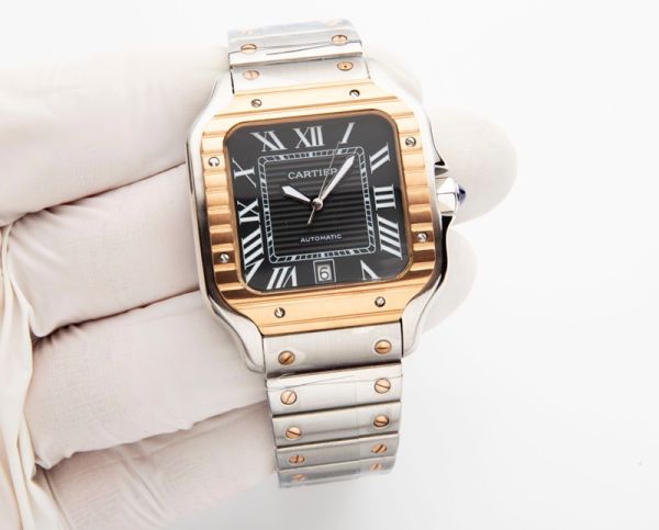 Best Edition With Swiss 8215 Automatic Movement Cartier Santos Two-tone Gold/Rose Gold Strap Men Watch