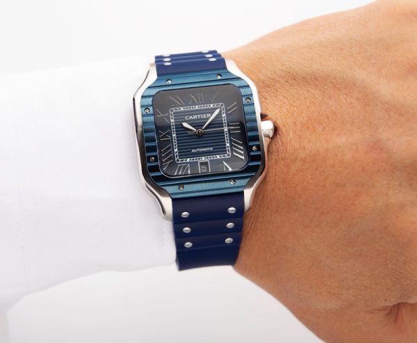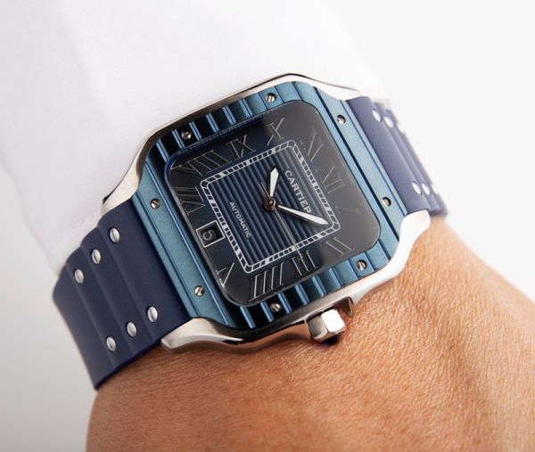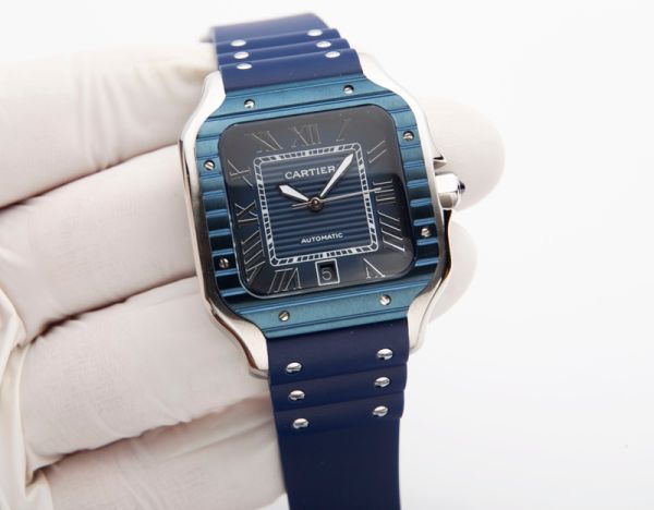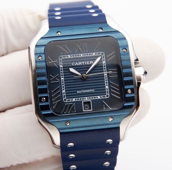 Best Edition With 8215 Automatic Movement Cartier Santos Blue Dial Blue Bezel Watch