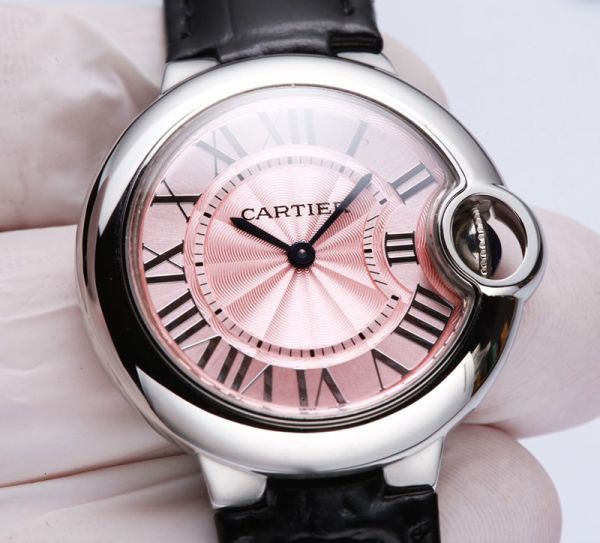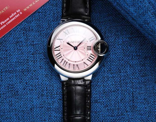 Cartier Ballon Bleu De 33MM 157 Quartz Movement Leather Strap Women Watch