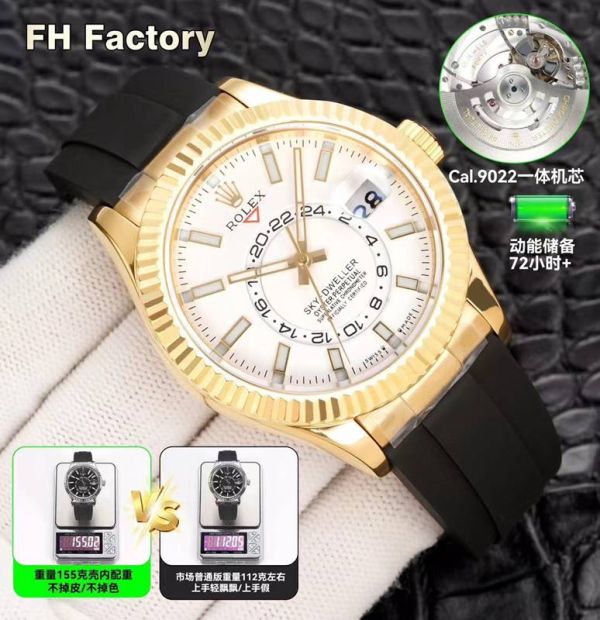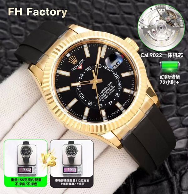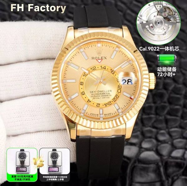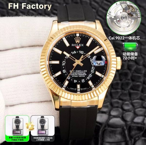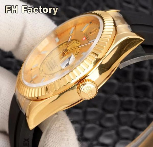 FH Factory Rolex Sky-dweller Replica with Gold Case 9002 Movement 904L Steel 42mm Gold Bezel Watch