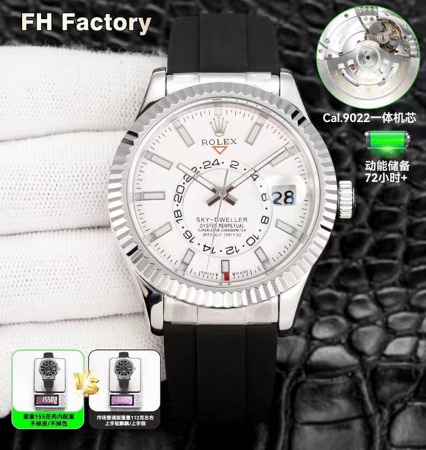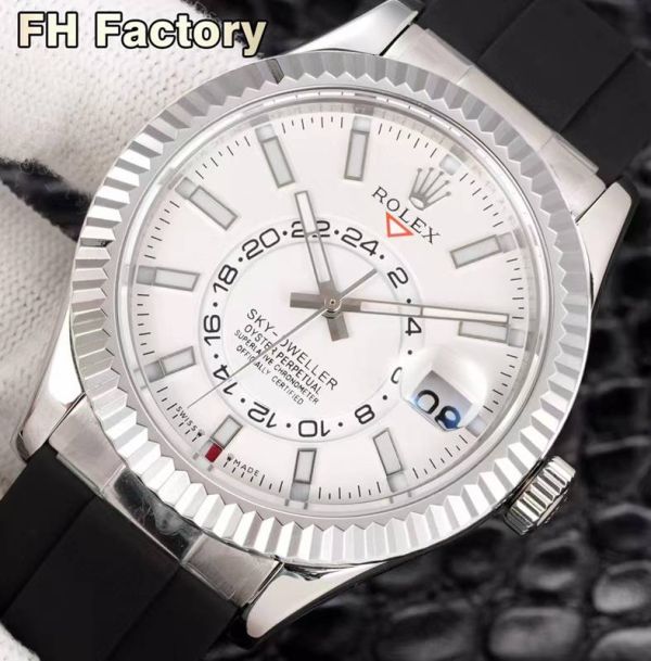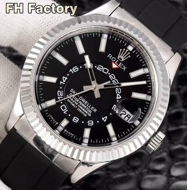 FH Factory Rolex Sky-dweller Replica with Black Dial 9002 Movement 904L Steel 42mm Silver Bezel Watch