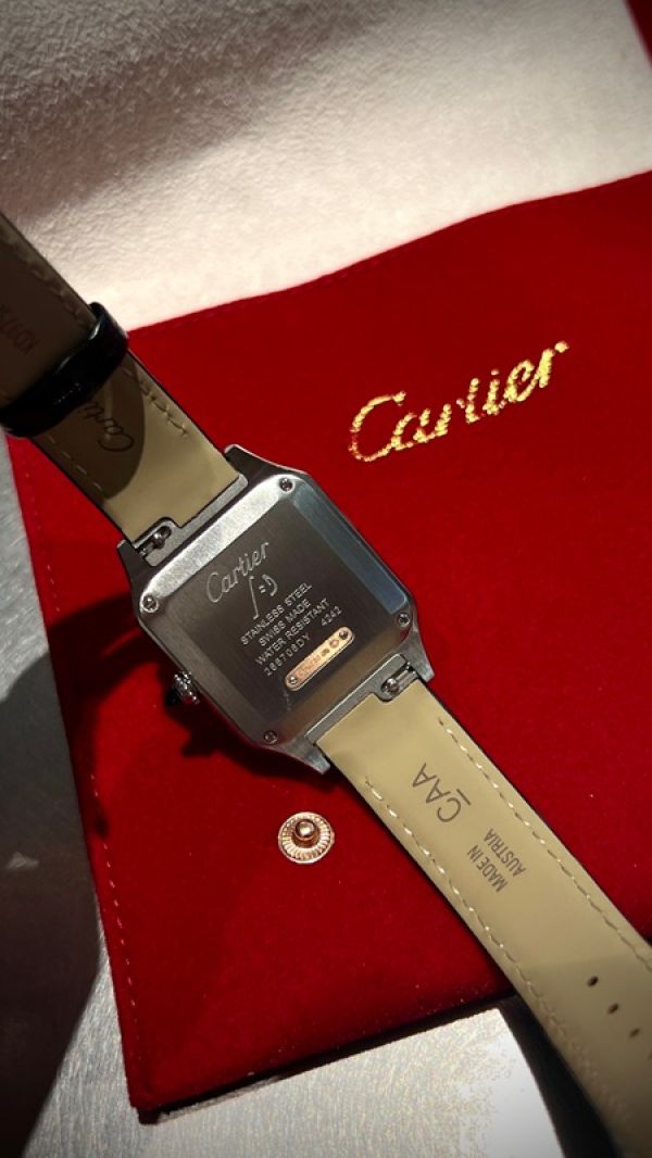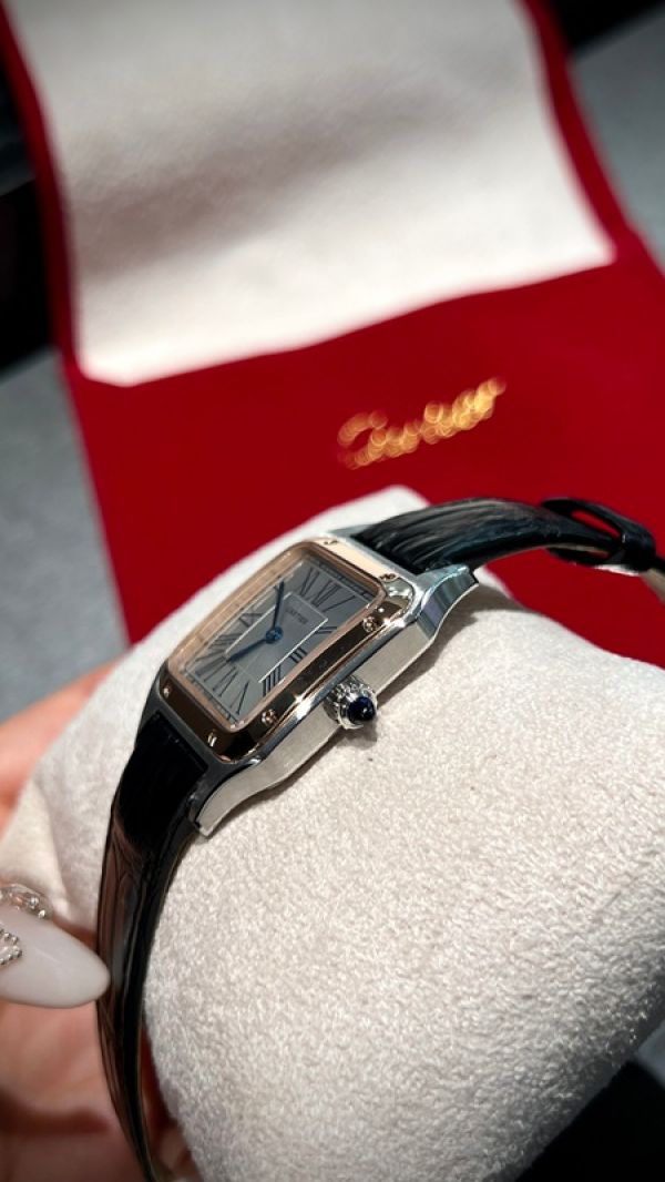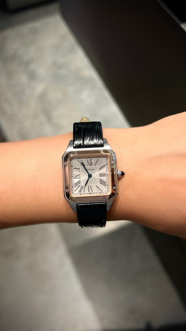 Cartier Santos Dumont 38*27.5mm Swiss Quartz Movement Crocodial Leather Strap Women Replica Watch