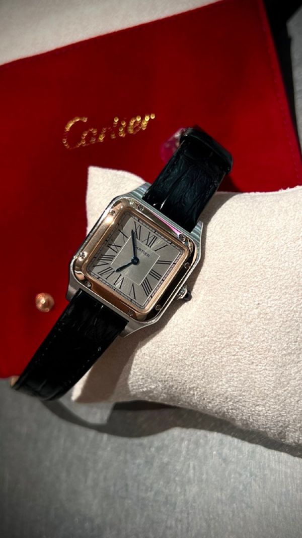 Best Edition With Swiss Quartz Movement Cartier Snatos Dumont Rose Gold Bezel Watch