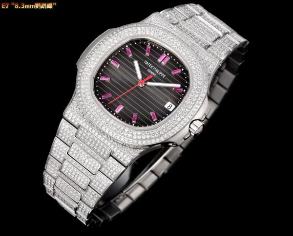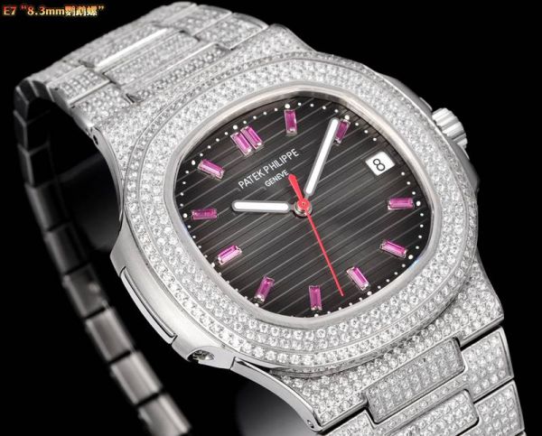 E7 Factory Patek Philippe Nautilus Cal.324 Movement 316L Steel 40mm Diamond Red Second Hand Watch